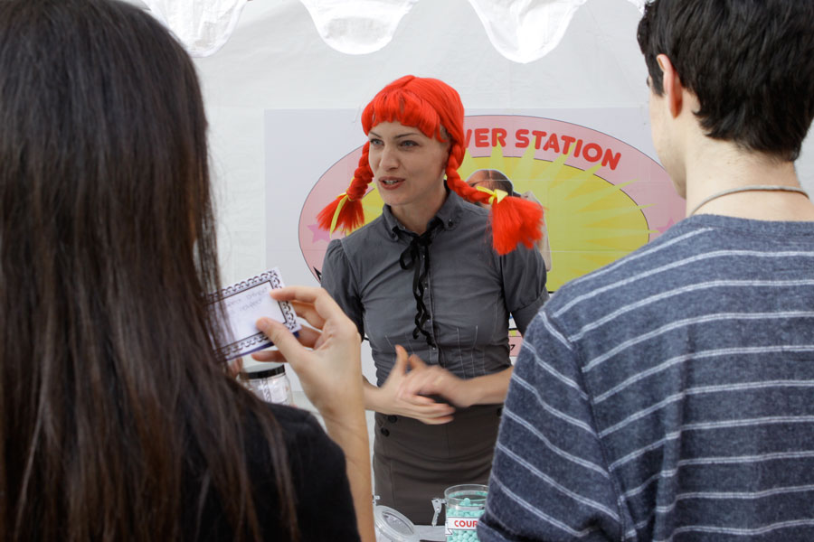 Empower Station är en interaktiv plattform för möten uppbyggd runt ett marknadsstånd där fem Pippi-liknande karaktärer och de förbipasserande på gatan kan byta idéer och tankar om vad egenmakt och jämställdhet är.